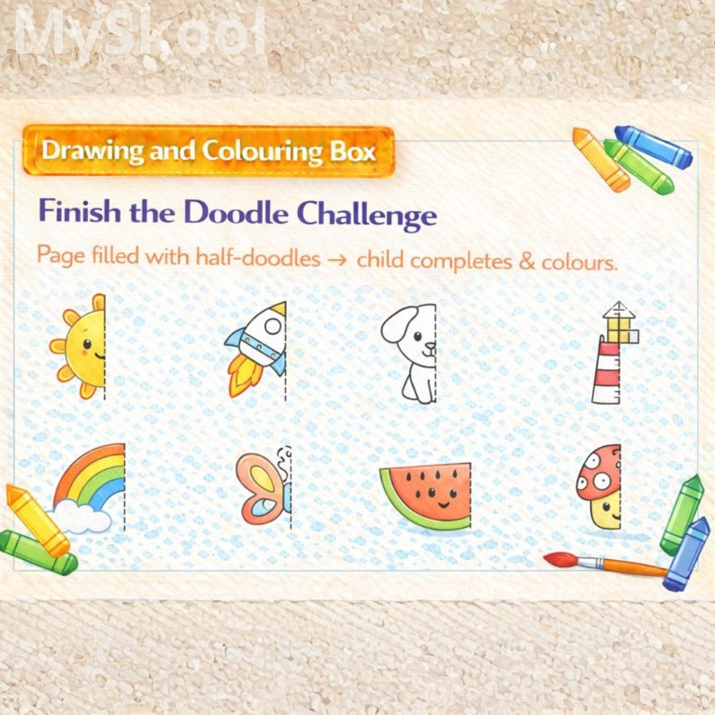 This activity builds independent creative thinking. Students learn to visualise incomplete forms. Problem-solving skills improve. Confidence in originality grows. Imagination is freely explored.