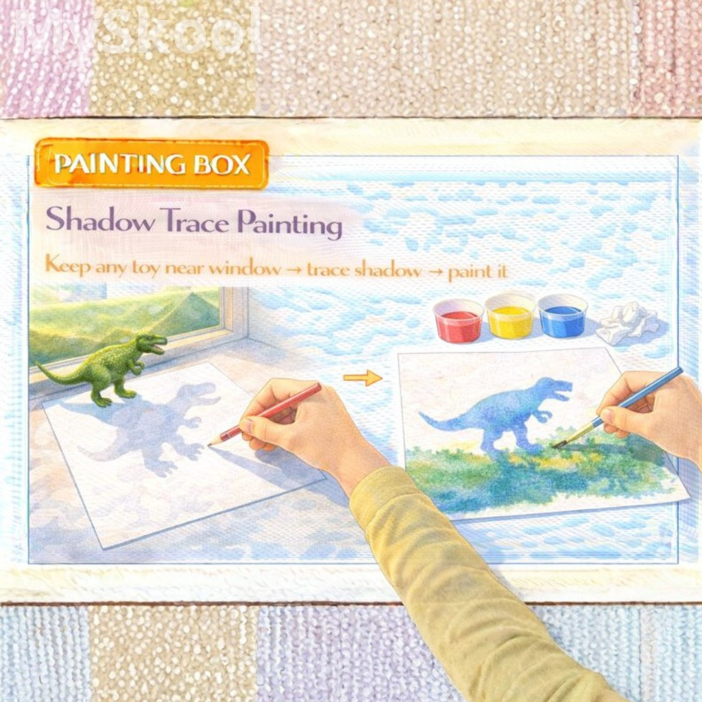 This activity introduces observation of light and shadow. Children learn tracing skills. Awareness of shapes improves. Creativity grows. Curiosity develops.